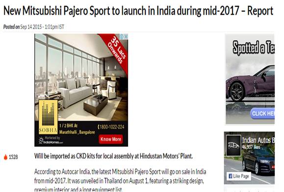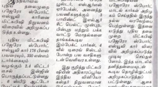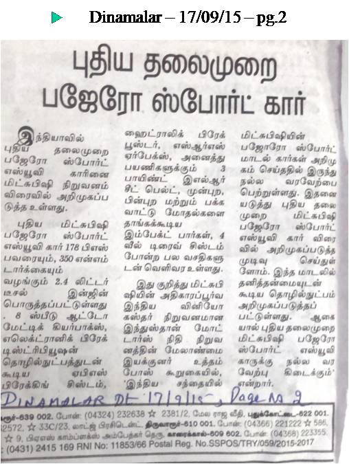 New-gen Pajero Sport launch – Dinamalar – 17/09/15