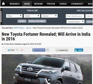 New Toyota Fortuner will arrive in India in 2016 – NDTV Auto