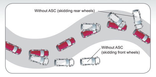 Active stability control (ASC) controls over steer, under steer effects and prevents skidding